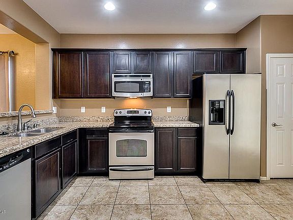 3 bedroom 2 bathroom located in Montana Vista features a gorgeous kitchen, tile and carpet flooring throughout the home and lovely desert landscaping! The kitchen includes all stainless steel appliances, beautiful cabinets to offset the granite counter tops! The master bedroom includes a full walk in closet and master bathroom with a private toilet room and a double sink vanity! Outside features a covered patio. Washer and dryer are included! Located near Aguila golf Course and Ceasar Chavez Park! All applicants will be notified and invited to view the property. No one that has not completed an application and passes backgroud/credit check will be shown the property. Currently occupied do not visit property Tenant pays for all utilities and landscaping of home.