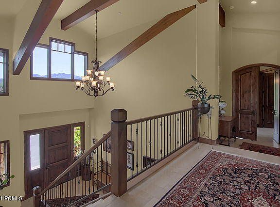 Located in the gated community of Moose Hollow Estates is a graciously classic Mike Upwall designed home. There are expansive views of East Canyon to the North, Park City and the resorts to the South! The home was designed to embrace the stunning scenery from every window. Understated and classic, you are greeted upon entering the spacious foyer with stately travertine floors and awe-inspiring wall of windows framing gigantic Alpine Fir Trees. On the same floor is an impressive office - glass walls to appreciate the views while working from home.....not a bad distraction. The gourmet kitchen is a chef's dream. Well appointed with custom solid wood Alder cabinets, and high end appliances including a beverage refrigerator tucked away in the large central island. The expanded outside covered deck has a built-in Viking grill - perfect for outdoor entertaining. To add to the ambience on the deck is a wood burning fireplace to take the chill off the cool mountain summer evenings. The generous pantry has a ''dumbwaiter'' for ease in transporting groceries from the 3-car garage. The Hickory floors are a rustic scraped engineered plank which blends nicely with the grand stone gas fireplace in the great room. There is a balcony directly off the Great room to enjoy the morning cup of coffee and appreciate nature's glory. The Master suite is the epitome of a private oasis with a welcoming sitting area complete with a cozy fireplace - perfect to enjoy a quiet moment. The ensuite bath has dual sinks, tub and shower with an ample walk-in closet. Every bedroom has an ensuite and walk-in closet. The home sits on 2.5 acres and is surrounded by over 150 acres of Open Space with both private and public trail systems. Summer 2020 the Sellers installed a ''State of the Art'' septic system and water conditioner for any Buyer's future enhancement and benefit. If you are looking for views, privacy and a thoughtfully designed home - look no further - you are home.