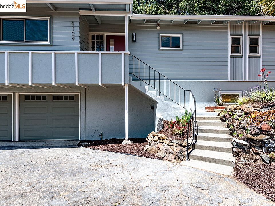 Built by O. W. Johnson in 1961, this classic, tastefully updated two-plus bedroom, three-bath, privately-sited contemporary is infused with a mid-century flair. The living room, dining room and kitchen are light-filled and open, and feature vaulted, beamed ceilings and wonderful indoor/outdoor access. Sited high up on Maybelle, at the end of a long driveway, one feels a sense of tranquility, almost a country-like feeling upon arriving. The distance from the street coupled with the breathtaking and expansive views, both of the bay, and the large deep lots on this portion of the street, provides instant serenity. No need to worry, however, as two shopping areas are close by. One can go up the hill to the Lincoln Square Shopping Center (1.3 miles) or down the hill to the Laurel shopping district (0.5 miles). This special home offers the best of both worlds, a tranquil oasis with urban amenities close by. Some of the home's special features include a primary bedroom with a spa-like en suite bath and private patio area, an attached, oversized 2 car garage w/ interior access and a lower level family room with 8'2" ceilings. This room, with an adjoining bath could also be a guest suite, a home office or a 3rd bedroom. Many newer systems.
