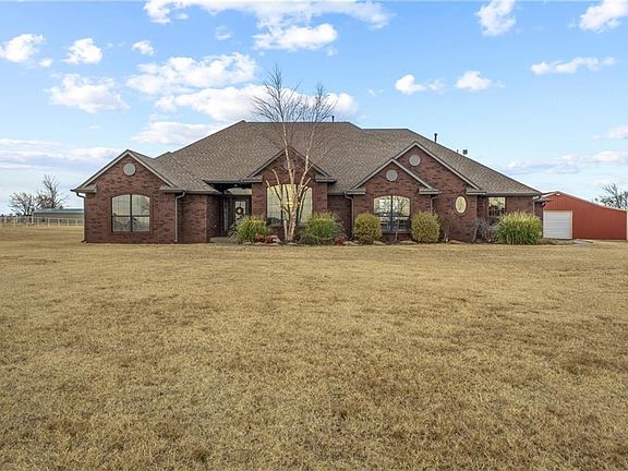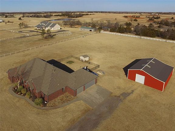 Nestled on 5 picturesque & private acres in the Deer Creek Schools.This is the home you have been looking for. This custom built one owner home has so much to offer...with 3 beds,2 1/2 baths,formal dining,formal living w/cozy fireplace,dedicated study/room,spacious family room & much more.Spacious master suite has walk-in closet & spa-like bath.Kitchen is open to family room & features eat-in area,stainless steel appliances and breakfast bar.Refreshed w/recent updates include new carpet,interior paint,stainless steel appliances,new front door,some light fixtures.40x50 shop/outbuilding that has electricity,2 doors & side barn area.All 5 acres of the property is fully fenced w/entrance gate for privacy.Epoxy garage floors.Storm shelter. Security system includes interior & exterior cameras.Enjoy our beautiful Oklahoma sunsets & outdoor living/entertaining on large covered back patio.This beautiful home gives you the peaceful, relaxing country life but still close access to city amenities.