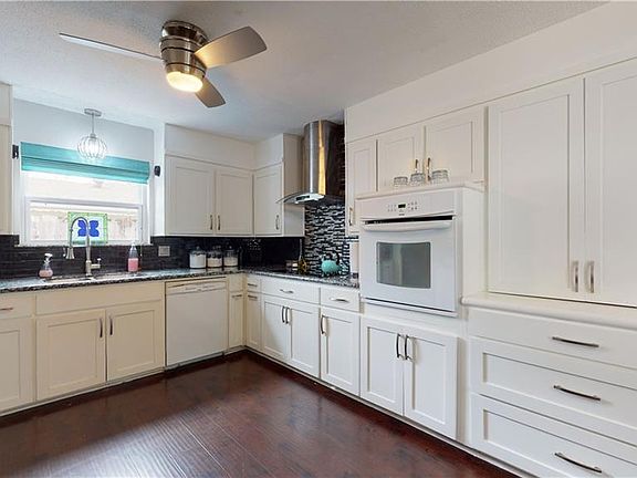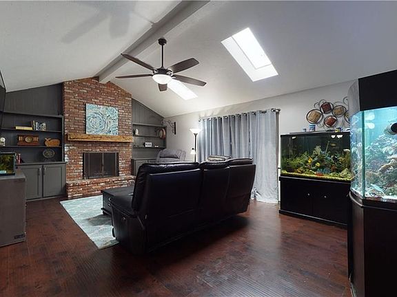 Nicely updated 4 bedroom home in a very desirable location & absolutely move-in ready. Pride of ownership is reflected in this much loved home. Neutral colors throughout give this home a serene feel. Two bedrooms share a jack & jill bathroom. In the living room you will find a wood burning fireplace w/built-in shelves on either side, nice wood look floors, & a large patio sliding door to the backyard. The skylight adds natural light to the living room to make it bright. The kitchen pops with white cabinets & new hardware, beautiful backsplash which compliments the gorgeous granite countertops & new ceiling fan. The dining area opens up to the kitchen & has a new light fixture. Both bathrooms have granite countertops, new double sinks & faucets, mirrors, & tiled showers. The master bath, which is also accessible from the hallway, has a walk in shower. In the hallway there is a large built in storage area for linens, etc. HVAC & water heater @ 3 years old. Don't wait to see this one!