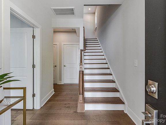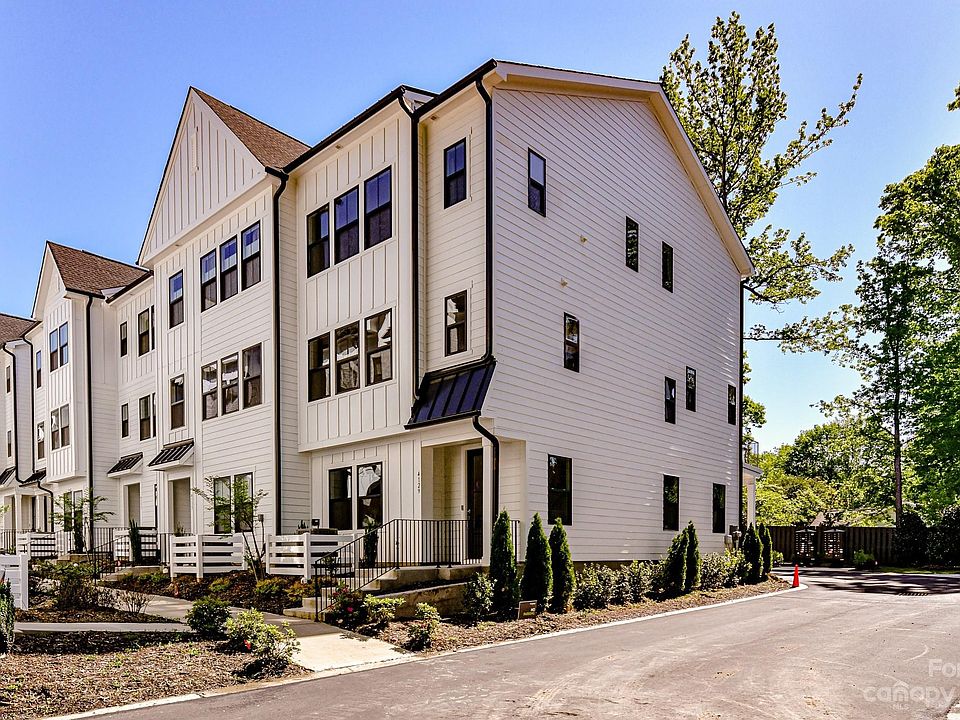 Welcome to this newly constructed townhome in the heart of Charlotte! Open floor plan living on main level, features a beautiful kitchen w/ white cabinetry, quartz counters w/ waterfall edge island, 36" gas range, & SS appliances & farmhouse sink. Living room flooded w/ natural light, has access to the 19' wide balcony, & is complete w/ electric fireplace. Spacious dining room allows for entertaining large parties, & office nook tucked away provides additional home office space. Upstairs you'll find the primary bedroom w/ dual closets, tray ceiling, & ensuite bath w/ walk-in shower, large vanity w/ quartz counters & linen closet. Laundry room w/ decorative floor tile is ideally positioned between the bedrooms w/ additional cabinetry for storage. The upstairs guest bedroom w/ great natural light in both bedroom & ensuite bath, features quartz counter vanity & tub/shower combo. Downstairs offers a drop zone off the garage entry, coat closet, & guest bedroom w/ ensuite bath as well.
