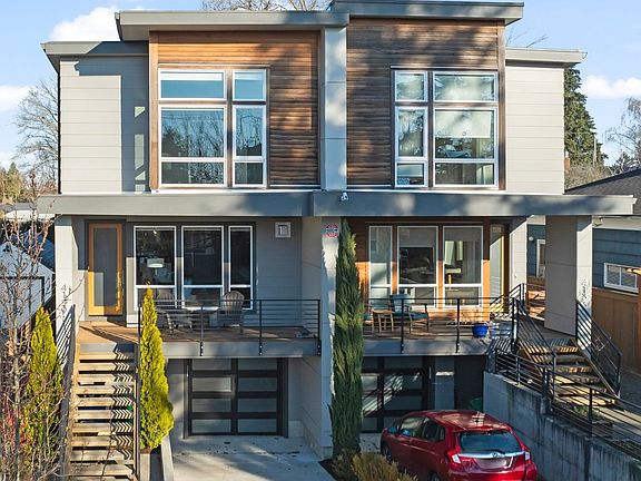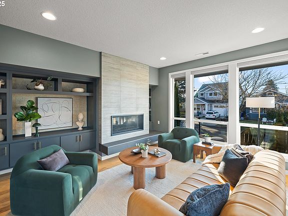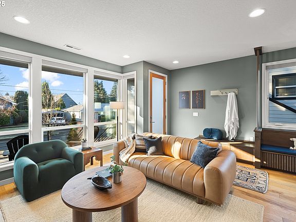 Modern Energy-Efficient Luxury Home in Walkable Woodstock! Certified Earth Advantage home was built above code and has all the modern conveniences. High-end built-ins, custom tile work, hardwood floors, slab waterfall quartz counters, induction cooktop & stainless steel appliances. Primary bedroom has soaring ceilings with a wall of windows, a beautiful en suite bath with walk-in shower and a walk-in closet. All carpet is new. Lower level has a large bonus/family room with a full attached bath and access to the garage and storage room. Private deck off of kitchen + easy-care fenced yard with sprinkler system. Quick stroll to Berkeley Park tennis courts, Lewis Elementary, Woodstock shops, groceries and restaurants. No HOA! [Home Energy Score = 9. HES Report at https://rpt.greenbuildingregistry.com/hes/OR10235176]