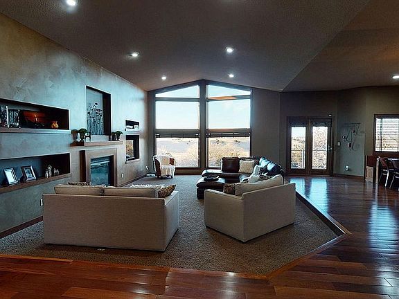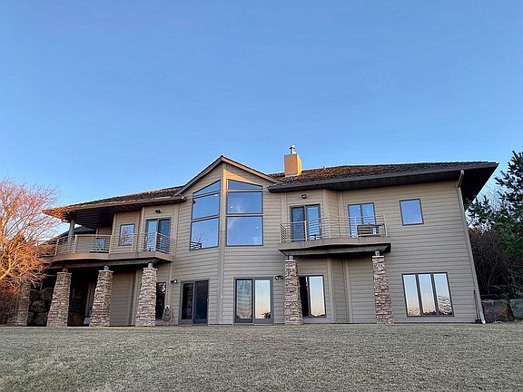 Spectacular Home! Pine trees line the curved driveway & yard...keeping it very private! The front entry is bold & impressive. The view when you step inside the door is beyond amazing...& a year round delight. Open concept w/ a fireplace, beautiful eat-in kitchen, island, corner windows, & more. Luxurious, large master suite w/ heated floor. The lower level is a family & entertaining space that will fulfill your dreams. It includes a mini kitchen/bar, dining area, fireplace, theatre room...& more amazing views! There is a massive multi-level garage that you need to see to believe. It holds a multitude of vehicles & toys and is heated, too. The work space is incredible...well beyond any man cave. There is Geothermal heat & sprinkler system. The landscaping is unlike anything you could imagine w/ a breathtaking seating area! Truly an incredible home in every aspect!! Listing Brokered by Mitchell Realty, LLC Call Ardis Oldenkamp, Licensed Broker 605-999-1588
