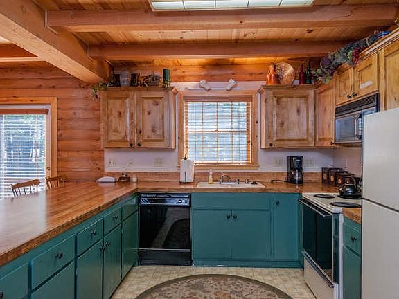 Looking for a charming log cabin in Shaver Lake? Look no more! This beautifully maintained real log home is being sold fully furnished and is priced to sell. Located in Musick Meadows this little gem features spacious kitchen with huge breakfast bar opening to dining area with French doors to large wrap around deck and covered front porch. Cozy living room boasts wood stove on river rock hearth. All three bedrooms are upstairs with 1 full bath. Second bath is on the main level with laundry facility. Paved level driveway for easy access, plus detached storage shed with roll up door. Don't miss this great opportunity!