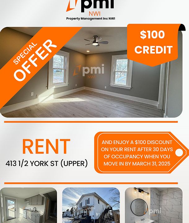 A $100 move-in credit is offered after a 30-day period of residing in the property. Prospective tenants are NOT required to pay 3rd party application fees. All applications MUST be submitted through the PMI NWI website. Applications submitted via 3rd party websites or vendors will NOT be accepted. For any questions, please use the "Request a Tour," "Check Availability," or other contact options provided. Cozy and fully updated 2-bedroom, 1-bath upstairs apartment in a great Michigan City location! This charming space features modern finishes throughout, with a bright living area and a stylish kitchen with updated cabinetry. You'll love being just minutes away from the beach, zoo, shopping, dining, the train, and all that Michigan City has to offer. The apartment is perfect for anyone looking for convenience and comfort. Refrigerator coming soon. Schedule a tour today! Additional costs include a required Tenant Benefit Package ($30/month) and a Utility Package ($36/month) for water, sewer, and trash. All other utilities are the tenant's responsibility. Alternative cash-in-pocket security deposit programs are available. At this time, we are not accepting Section 8. "