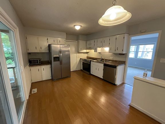 Split level design ready for updating! One street over from fabulous 71 acre Knightdale Station Park with trails, pavilons, pond, sports areas & playgrounds, restaurants and Oak City Brewery. 3 bdrms & bath on upper level; living rm & eat-in kitchen on main; family room w/renovated full bath on lower level (had once been used as primary bdrm). Updated vinyl windows & sliding doors to patio on lower level, screened porch on main level. Addiitional 10x20 unheated area partially finished + unfinished laundry/utility rm. Concrete driveway replaced. Wooded area in back extends to end of neighbor's fence.