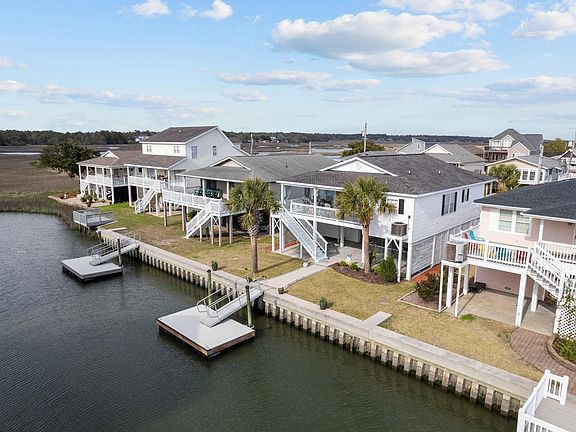 This home is truly an OMG! Spectacular 4BR-3BA raised beach home on a channel in Cherry Grove! Only three blocks to the Cherry Grove beach, short-term rentals allowed! Best of both worlds, beach & channel living! You have your own private boat dock. From the front porch you have peaceful views of the marsh & from the oversized back deck views of the channel. Impeccably maintained & move-in ready! You will love the comfortable beach theme in every room of the house. Custom plantation shutters throughout the home. Hardwood flooring in the living room, tile in kitchen/baths, dining area & carpet in the bedrooms. The master suite features a sitting area, double sinks & access to the back deck. Underneath the house is an outdoor shower & storage garage for all your gear. Make an appointment to see this Cherry Grove property today!!! All measurements are approximate, but not guaranteed.