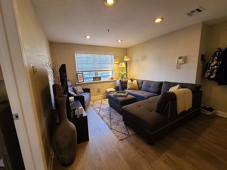 Newly updated 823 SQ. FT. condo with a large Master Bedroom Suite, one additional full bath, a second bedroom, open living space, breakfast nook, laundry closet and deeded garage parking space. The condo is conveniently located near public transportation, walking distance into Hoboken and has low monthly HOA fees/ taxes. This is a great move-in ready apartment. Owner is a NJ licensed Real Estate agent.
