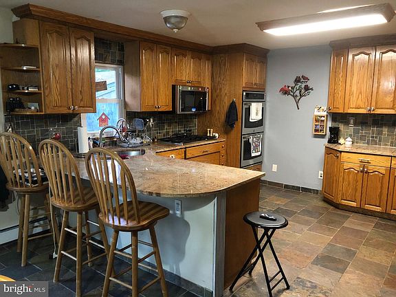Not your average Rancher! Looking for large, open area? This might be the one! Wide open living room greets you at the front door! Large, beautiful kitchen with granite countertop, SS appliances, double Oven, convection microwave and adjoining dining room. Very large en suite plus 3 more very large bedrooms. Partially finished basement that features a huge family/great room with a bar set up and a 12 foot movie screen/theater. Large pavilion for outdoor entertainment. HUGE garage to fit all of your tools, multiple cars, equipment, tractors and a work shop too. Plus we have solar panels too. Don't let this pass you by!!