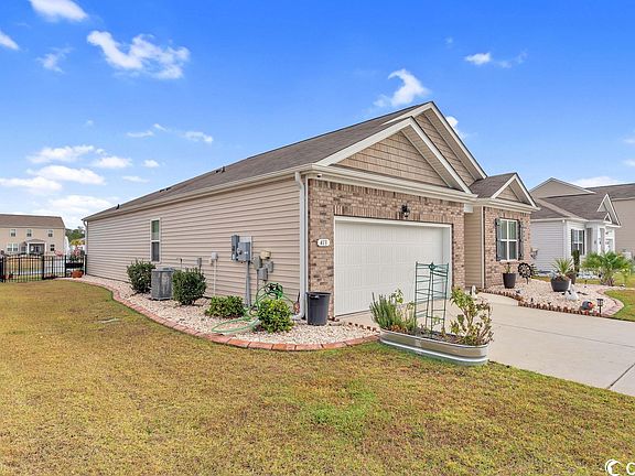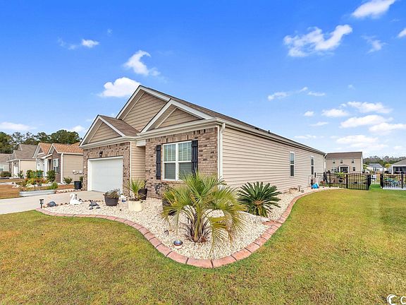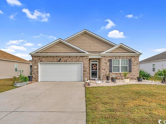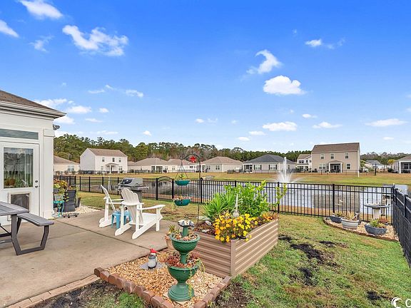 This fabulous 4 bedroom, 2 bath, 2 car garage home is all on one level. Built in 2018, with almost every upgrade option. The back of the house was extended offering a larger dining/living area. The ceiling height was increased to 9 feet creating a spacious feel and increasing the flow of natural light. Vinyl plank flooring runs through the living, dining, kitchen and bathrooms offering the look of wood with easy cleanup and care. Stainless appliances and granite counters in the kitchen along with a large pantry. The large island and open floor plan make this a perfect home for entertaining. Mornings are dreamy as the fountain dances in the pond just outside of your master bedroom window. A large walk in closet with an additional master bedroom closet, a 5 foot shower and dual sinks in cultured marble complete the master suite. Whether relaxing in the Carolina room with morning coffee or grilling out with friends on the extended patio, you are sure love this home.