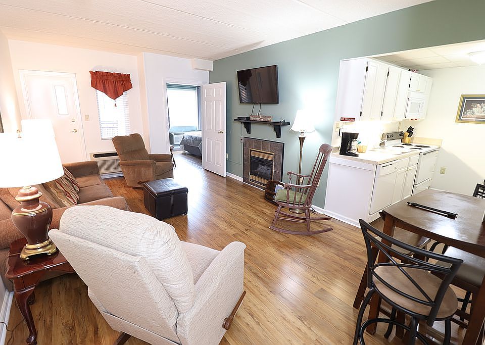 2 Bedroom with ensuite Bathrooms, full size kitchen, living room with gas fireplace, new laminate flooring, new paint, private balcony with view of the Mountains and Gatlinburg. Off street free parking. GREAT INVESTMENT PROPERTY! STR! OR PRIVATE HOME! Open air quiet walkway to your entry door nestled against the wooded mountainside. Indoor heated pool/hot tub and coin operated laundry on first floor. Located just blocks from the heart of downtown Gatlinburg. Walking distance to all of your favorite dining spots and attractions. Including Anakeesta, Gatlinburg Skylift Park, Ober Gatlinburg Ski Lift tram, Ole Red's, Donut Friar, Pancake Pantry and so much more.