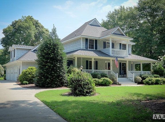 This unique home is nestled into mature trees and established landscaping in the gated community of Edenton Bay Plantation. The home boasts an open floor plan, but also includes ample personal space for everyone. Enjoy coffee on the front porch with a view of the Albemarle Sound, and evening cocktails on the rear screened porch overlooking the pool and pond. This cul-de-sac lot affords peace and privacy within a park like setting, just minutes away from Historic downtown Edenton. Come enjoy the good life!