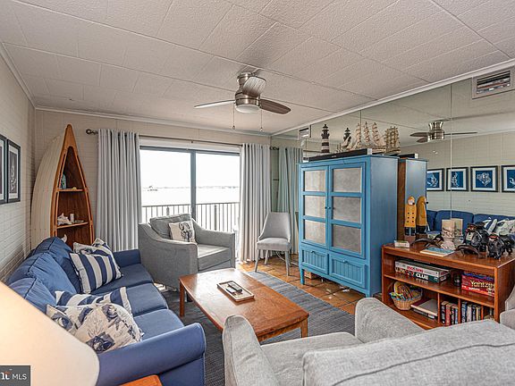 Welcome to 413 Bayshore Drive #201, a beautifully updated three-bedroom, two-bath bayfront condominium offering breathtaking panoramic views, a private boat slip, and an unbeatable downtown Ocean City location near 26th Street. This rare waterfront residence blends relaxed coastal living with the vibrant energy of downtown OC. Situated directly on the bay, this 1,178 sq ft corner unit delivers sweeping water vistas, abundant natural light, and effortless access to the Boardwalk, beaches, restaurants, marinas, and entertainment while maintaining a peaceful, tucked-away ambiance on Bayshore Drive. From the moment you enter, you’re greeted by warm terracotta tile floors, soft coastal hues, and an open concept layout designed for comfort and connection. The spacious living area opens onto an expansive private balcony overlooking the bay, perfect for savoring morning coffee, evening sunsets, or simply relaxing as boats glide past. Large sliding glass doors fill the home with sunlight and frame postcard-worthy views from nearly every angle. The inviting kitchen offers wood cabinetry, tile backsplash, modern lighting, and a peninsula with bar seating that flows into the dining space, creating the ideal setup for entertaining family and friends. The dining area easily accommodates a full size table and enjoys bay views that make every meal memorable. The primary suite is a true retreat, featuring direct balcony access and floor to ceiling water views that welcome the sunrise and sparkle of the bay at dusk. Two additional bedrooms provide flexible sleeping arrangements for guests, kids, or a home office setup. Both bathrooms have been tastefully updated. Step outside and enjoy one of this home’s most valuable features: your own private boat slip. Launch your boat, jet ski, or paddleboard right from your backyard. Whether you’re cruising to dinner, fishing in the bay, or heading out for a sunset ride, life on the water has never been easier. Additional highlights include: • 1,178 sq ft per public record • Three bedrooms • Two full bathrooms • Private boat slip with deep-water access • Large bayfront balcony with unobstructed sunset views • Open-concept living and dining areas • Tile flooring throughout • Updated lighting and fixtures • In-unit washer/dryer • Assigned parking and guest parking • Professionally managed building with well-kept exterior and grounds The Bayshore Condominium community is known for its desirable waterfront setting, strong management, and unbeatable location near 26th Street just a short stroll to the beach, the Boardwalk, Jolly Roger Amusement Park, and dozens of popular restaurants and shops along Coastal Highway. It’s close enough to enjoy all the excitement of downtown Ocean City while still offering tranquility at day’s end. Monthly condo fees (approximately $300) cover exterior maintenance, common area care, insurance, and landscaping offering true low-maintenance, turn-key ownership. Whether you’re searching for a primary residence, vacation retreat, or investment property with strong rental potential, 413 Bayshore Drive #201 stands out as one of Ocean City’s best waterfront opportunities. Enjoy stunning views, easy boating access, and a central location that defines coastal living at its finest. Experience bayside serenity in the heart of Ocean City. Welcome home to Bayshore #201, where every day ends with a sunset over the water.