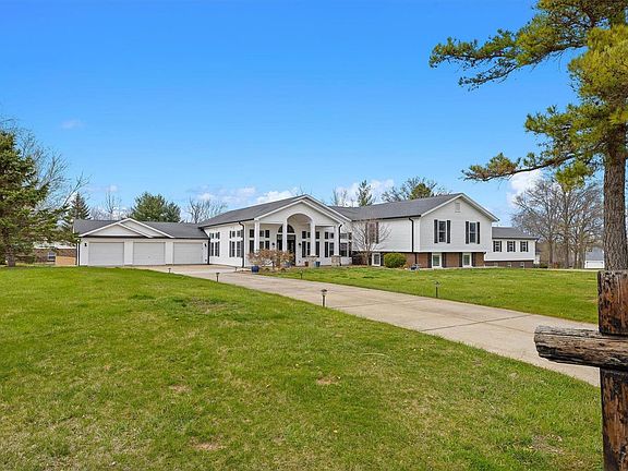 Make this one-of-a-kind 4 bed home with in-ground pool & 3+ acres of usable land yours! Gorgeous custom leaded glass door welcomes you in from the impressive front porch. Great open floor plan highlighted by soaring ceilings. Updated kitchen with granite countertop, SS appliances, breakfast bar & tons of cabinet space. Separate dining room with wrought-iron & rough-hewn wood railings overlooks step-down into the huge living room with guest bathroom. Sunroom & FR offer sweeping views of the large backyard, pond & beautiful mature trees. More details like French & pocket doors, recessed lighting & 2 fireplaces make this home stand out from the crowd. Main bedroom suite situated on the upper level with 2 private baths and convenient adjacent laundry room. 3 more beds on the lower level with a full bath & walkout to the patio. Attached 3-car garage, plus 2 more 3-car detached garages (9 spaces), each measuring 24x36, one with a 2nd level offering a huge workshop. Great property for horses! Additional Rooms: Sun Room
