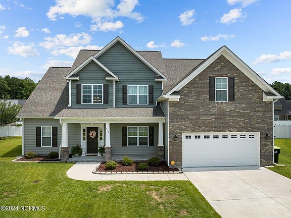 If living in a highly regarded development sounds appealing, then put this opportunity in Lynnwood Highlands at the top of your New Bern tour list. This lovely 4-bedroom, 4-bathroom beauty offers the irresistible curb appeal of Traditional architecture. Cross the threshold into a warm welcome that includes an open floor plan, lots of natural light complemented by stylish fixtures, neutral decor, notable ceiling styles, and a gas fireplace in the living room. With decor that inspires culinary artistry, the island kitchen is gorgeous with granite counters with subway tiles backsplash. The kitchen opens seamlessly onto the dining room, living room, screened in patio, and backyard. Located on the main floor, the tranquil primary bedroom includes a walk-in closet and a private bath with a separate tub and shower. In addition there is another first floor bedroom currently being used as an office. The other bedrooms, situated above the second floor are rich with ample closet space and ready for styling. Large hobby and flex rooms finish off the 2nd floor living area. Is this one the right house at the right time for you? This home is located outside the City limits, so only County taxes only. A seasonal community pool is an extra bonus. Close to New Bern and MCAS Cherry Point.