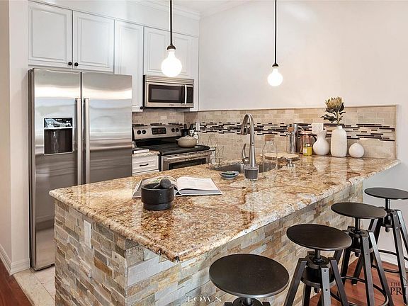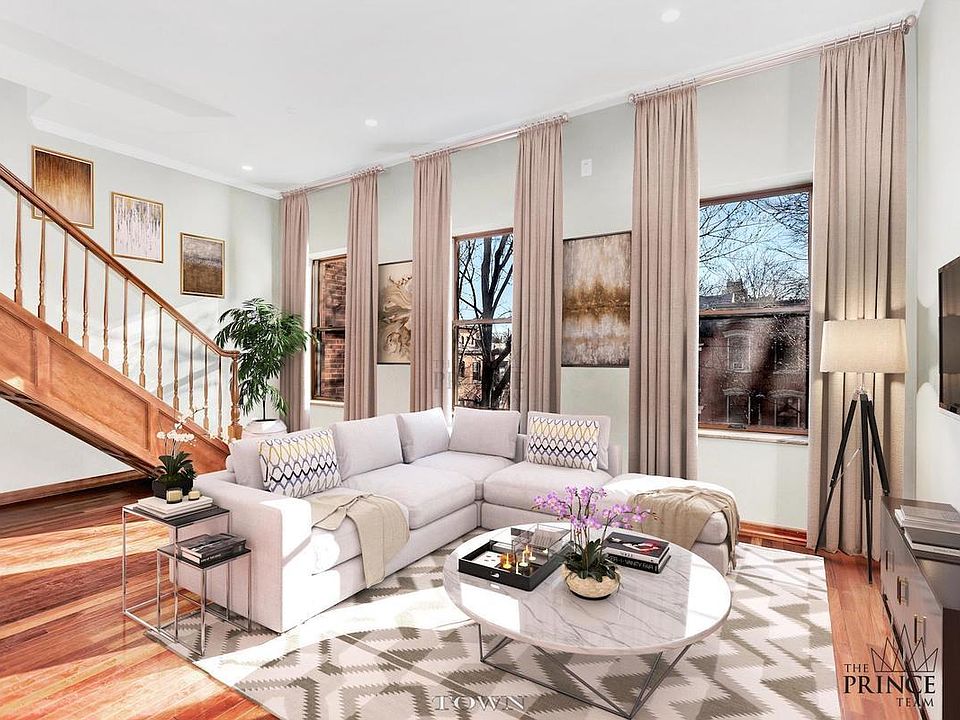 Be the king or queen of all that you survey in this glorious 2-bedroom (convertible 3), 2-bathroom penthouse duplex featuring oversized living areas, top-notch finishes and two breathtaking outdoor spaces. Enter the crown of this handsome townhouse, and take in the airy and bright, 19-foot-wide great room lit by large south-facing windows. Home chefs and designers will delight in the gorgeous kitchen outfitted with ornate granite countertops, custom cabinets and Bosch stainless steel appliances. Paved in rich Brazilian cherry wood floors and topped by crown molding, with the gorgeous staircase acting as an architectural focal point, residents and guests will feel surrounded by royal splendor. Glide past the splendid full bathroom and rows of hall closets including an in-unit washer-dryer to take in the home's two large bedrooms. Each includes a large closet and access to the oversized rear terrace surrounded by leafy backyard views, and the master offers a serene en suite full bath. Head upstairs to find a bonus room suitable as a fantastic den, extra bedroom or home office leading to the massive, 450-square-foot roof deck providing wide-open city and treetop views. Throughout the 1,242-square-foot home, pin-drop quiet and year-round comfort are ensured thanks to masonry construction, high grade insulation and Mitsubishi ductless air-conditioning and heating. 413 Bergen Street is a majestic, brick and masonry townhouse situated on a quintessential Brooklyn tree-lined street. Completely rebuilt in 2014, the boutique condominium building offers four regal floor-through residences with a bike room and basement storage. Placed where Park Slope, Prospect Heights and Boerum Hill meet, this building is in the most exciting district in all of Kings County. Barclays Center and BAM fill the neighborhood with outstanding entertainment and cultural offerings, while Atlantic Terminal provides amazing shopping. Enjoy the vast outdoor spaces and amazing greenmarkets of Prospect Park, while steps away, B/D, N/R, 2/3 and 4/5 subway lines and LIRR trains provide unbeatable access to the rest of New York City and beyond.