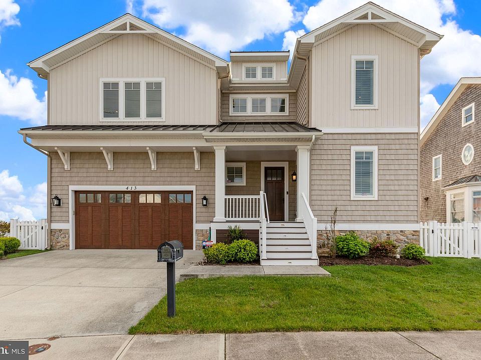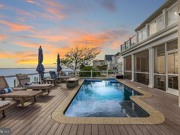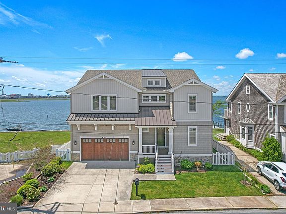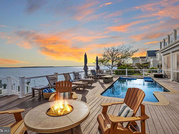Blending a perfect balance of coastal style, modern farmhouse cues, quality construction, and awe-inspiring amenities, this luxury residence is among the finest in Ocean City, thoughtfully designed to take full advantage of the stunning panoramic views overlooking the Assawoman Bay. This exceptional home was designed by Steen and Associates, and its interiors imagined and created by Inez Schapiro of Baer Associates and offers two levels of robust living space while providing endless lifestyle options inside and out. Inside, superior craftsmanship, substantial finishes including wide plank hardwood floors, ten-foot ceilings, solid core doors, custom built cabinetry, precise millwork, and designer lighting from Jones Lighting Specialists are showcased throughout to inspire coastal sensibility at its finest. From its privileged position on the main level, an open concept design with tall Anderson windows and atrium doors bathes the living spaces in natural light and bay breezes with an invitation to meander outside for the glorious sunset views on the expansive rear deck. The great room boasts a custom patterned, coffered ceiling, with shiplap inset centering the space, anchored by a majestic fireplace, sided with built-ins, and topped with clerestory windows. This impressive open floor plan flows seamlessly into the gourmet kitchen equipped with a suite of Jenn-Air stainless steel appliances including a 42" French door refrigerator, convection microwave and wall oven combo, and 36" gas cooktop with range hood. Abundant 42" pure white shaker style cabinetry frames the kitchens' perimeter, offering copious storage, contrasted by a honed marble chevron backsplash with under cabinet lighting illuminating it. Center stage is the substantial island, distressed, finished with Hearthstone Gray stain and black glaze, topped with a beautiful Cambria Torquay Quartz counter, complete with an undermount sink, dishwasher, and breakfast bar. Adjacent to the kitchen is the dining area displaying sweeping floor to ceiling views, adorned with a deep brown shiplap ceiling, chandelier, and access to the screened porch and deck. The main level floor plan includes an office, hall bath, and mudroom located off the garage with a custom-built wall unit providing closed storage, drawers, shelving, and bench seating. A winding staircase off the foyer ascends to the upper-level sleeping quarters complete with three spacious bedrooms, each offers an ensuite with subline finishes, all have walk-in closets outfitted with EasyClosets custom built-ins, two have access to the balcony and the commanding views. Retreat, rejuvenate, and rest in the luxurious primary bedroom suite embellished with a striking deep tray ceiling, inset with shiplap, two walk-in closets, picture window views overlooking the bay and access to the providing balcony the ideal place to start and even end your day, remembering why you call this place home. The spa-like ensuite offers two separate vanity areas, a spacious frameless glass stall shower with rain head and 4-body sprays, and a private water closet. Step outside, where the phenomenal views you've been enjoying inside become a magnificent outdoor living experience. Spend your days lounging poolside enjoying unobstructed views of the bay or make your way to the private dock and 45' pier with boat lift, and jet ski lifts and launch your next adventure on the water. After a day of boating, jet skiing, kayaking, or fishing, it's your choice, rinse off in the outdoor shower and then spend the evening watching another glorious sunset. Do not wait, come see this astonishing home, it's simply a spectacular place for family and friends to gather and grow.
