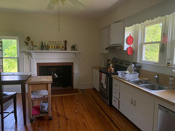 Available August 1. 4 bed, 2.5 bath farmhouse only 5 miles from Chapel Hill/Carrboro (3 miles to Jones Ferry park & ride). Chapel Hill Carrboro school system (McDougle Elementary, McDougle Middle, Chapel Hill High School). Modernized 1928 farmhouse with 19th century stone cellar. House has historic charm with decorative kitchen fireplace, extensive wood paneling, and vintage Kellogg telephone. Refinished original pine floors in kitchen and enclosed porch, updated fixtures and floors in bathrooms, and stainless steel kitchen appliances. Washer/dryer included. Windows were replaced with more energy efficient models in recent past. Yard maintenance and water/septic included; tenant responsible for electricity, propane (for furnace), and internet. Outdoor amenities include space for a garden, local farm stand next door, amazing sunsets over the barn, and scenic views out of every window!