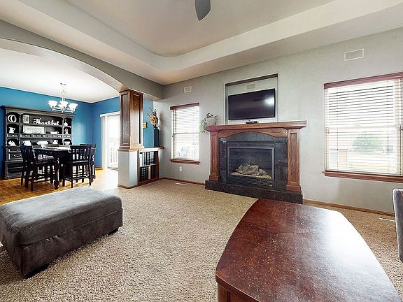 This spacious ranch is located in a family-friendly neighborhood, on a quiet cul-de-sac. The main level has carpet and wood floors, tray ceiling, and features a fireplace and central vac. Also on the main level are 3 bedrooms, 2 full baths and laundry. The kitchen features hardwood floors, laminate counters, with a granite island, stainless steel appliances, pantry and breakfast bar. Appliances stay with the home. The primary bedroom is located on the main level and features carpet floors, tray ceiling and walk-in closet. The primary bedroom's attached bath includes tile floors, quartz counters, jetted tub and walk in shower. The finished walkout lower level features a fireplace, 2 bedrooms, full bath, workout area and storage space. Outside you'll find a composite deck and patio overlooking the yard. Exterior features include a garden and fire pit. Property Improvements: - New Roof/Shingles - 2020 - New Furnace - 2021 - New Air Conditioner - 2021 - New Water Heater - 2020