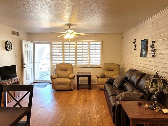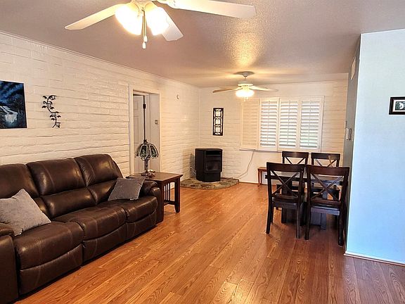 Four-bedroom home located in the Tyrone Townsite. Huge master bedroom with large walk-in closet. Living room features a pellet stove and laminate floors. New ceramic tile in the kitchen, new carpet in master bedroom and guest room. Upgraded oak kitchen cabinets in kitchen. Plantation shades. Private backyard with new wood fencing and storage shed. Covered back patio with new outdoor carpeting and workshop. Mastercraft metal roof. Appliances convey including washer and dryer.