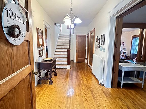 This 1926 Dutch Colonial home boasts 4 bedrooms and 2 baths and has a rich history with timeless features, while providing ample space for comfortable living. Step inside the foyer and enjoy the vintage charm of the pocket doors, hardwood floors, beautiful staircase and solid wood trim and doors. The first floor of this classic beauty offers an eat in kitchen, formal dining room, half bath and large living room featuring a traditional brick fireplace and which steps out onto a private side porch. Climb the stunning staircase to the second floor and you will find 4 spacious bedrooms, a full bath and delightful sunporch which overlooks the back yard. The walk up attic offers plenty of storage or could even be converted into third story living. The walkout basement offers a huge family room with corner woodstove and is perfect for those large get togethers. Finishing up the basement is a handy laundry room and utility room. This is a classic design with modern comfort, don't miss out!