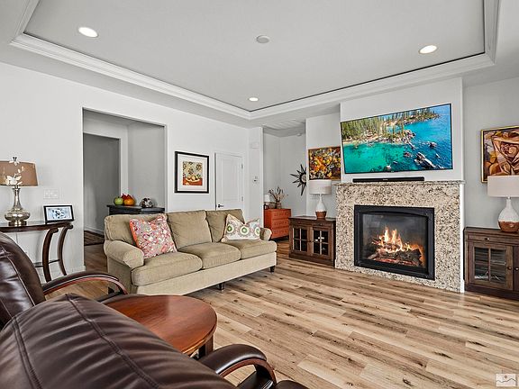 Nestled in the desirable Ivesia community in Damonte Ranch, this home offers both serenity and style. Situated on a cul-de-sac, the residence features 3 bedrooms, a bonus room with a closet, 2 baths, and a spacious 3+ car garage, totaling 1913 square feet of comfortable and contemporary living space. Experience the seamless flow of this home's open floor plan, enhancing both space and connectivity. Stylish LVP flooring throughout most of the home except for carpet in the secondary bedrooms.See ext. remarks, Modern luxury in the upgraded kitchen with a Frigidaire gas cooktop, double ovens, quartz counters, and a subway tile backsplash create a stylish and functional space. Enjoy the convenience of upgraded cabinets with pull-outs, a large sink with a touchless faucet, and under-cabinet lighting. Relax in the family room where elegance meets comfort. A coffered ceiling with molding and lights adds a touch of sophistication. Enjoy the seamless connection to the outdoors with double sliders leading to the backyard. The upgraded fireplace features a granite surround with a blower and remote. The primary suite features crown molding, wood blinds, and custom paint. The master bath offers a touch of luxury with separate vanities, a walk-in shower featuring upgraded doors, and a bidet. A generous walk-in closet completes this sanctuary of comfort and style. Discover versatility in the bonus room off the primary suite. With its own entrance to the garage, a closet, and ample space, this room is perfect for an office, gym, nursery, or craft room—adding functionality and convenience to your living space. Two spacious bedrooms on the opposite side of the home, sharing a well-appointed bathroom. The laundry room features a laundry station with cabinets. This large 3+ car finished garage is heated and cooled, featuring an epoxy floor for a polished look. Other features in a tankless on demand hot water heater, a convenient sink, and drop-down attic storage. Versatile backyard designed for relaxation and entertainment. Plumbed for a gas firepit and gas to grill. Manicured lawn, planter boxes, and extra pavers expand outdoor living. Enjoy views of canyon and mountains, a tranquil fountain, and a covered patio area for stylish outdoor gatherings. Conveniently located close to great walking paths along the wetlands, restaurants, shopping and freeway access. See private remarks: