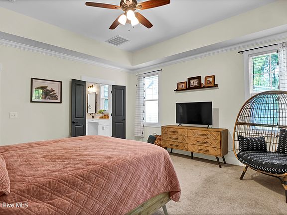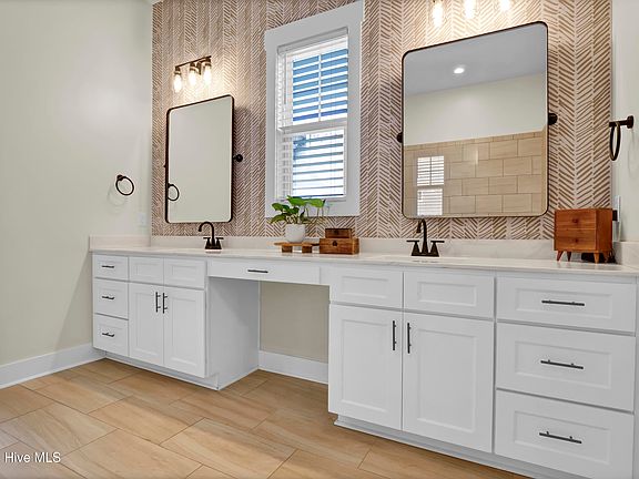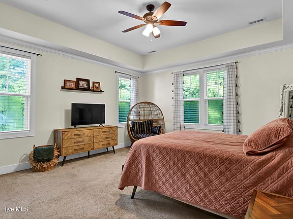 Coastal living at its best describes this well-appointed home in The Harbour at Summerset nestled in the heart of Hampstead. The Drop-back Plan built by Airlie Homes is a showstopper and boasts exquisite craftsman style finishes at every turn. You will absolutely love to entertain or just hang out in your custom kitchen with granite countertops, soft close drawers, an oversized island, ceramic tile backsplash, wooden beam ceiling and to finish it off, a gas cooktop with a built-in wall oven. Off of the kitchen is a formal dining area and open floor plan living room with gas fireplace that has access to the private porch area. The Master suite is located on the main floor and has a spacious walk-in closet, tray ceiling, ceramic tile walk-in shower with dual vanity. Some of the upgraded features include a shiplap staircase, accent walls, a spacious laundry and mud room and half bath on the first floor. The garage is an oversized 2 car and has a custom floor treatment. As you walk up to the second floor, you are greeted with 3 additional bedrooms and a bonus room that is currently being used as an office and there are two full additional bathrooms. The outdoor space is private and equipped for roasting marshmallows with friends and family around the fire pit. The home is located close to schools, shopping, restaurants, beaches, medical practices and fun things to do with the whole family. Make your appointment today.