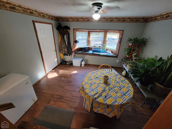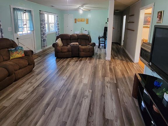Charming Country Home. This spacious home sits on an acre of land, partially fenced with storm cellar. The home is 3 bedroom two bath with new water proof vinyl wood in living area and bedrooms. Kitchen has been updated with back splash and faux granite counters. Sun room with bay window would be ideal for second living, dining room or office. Workshop is large with electricity. Ideal land for animals. Covered front porch. Back up wall heater ideal for winter evenings.