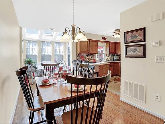 A Williamsburg Colonial style TH in tranquil Delancey Court where you can express your individuality in this 3 BR 2.5 bath. The LR is highlighted by a cozy gas burning fireplace & is a cheerful center for everyday living. Hardwood flooring in the informal dining area, off the kitchen, is just right for candlelight and will accommodate the largest family. Bright 4 season room with skylights lead to family size deck and private patio. Two car garage, appliance package, charm and convenience!