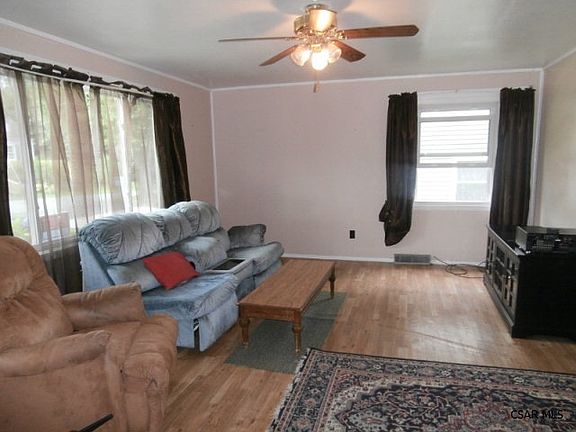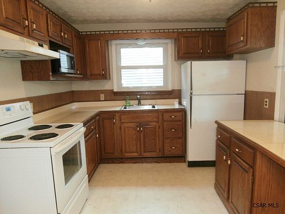 Many updates in this stone & vinyl sided ranch home with 2 bedrooms & central air in Conemaugh Valley schools. LR, eat-in kitchen w/oak cabinets, island & appliances. 2 BR's w/hardwood floors & double closets. Full BA, plus a bonus room with a double closet, would be great as a 1st flr. laundry. Walk-out basement leads to a patio covered by lg. deck with recessed lights & a level fenced in yard. Roof, siding, windows, doors, fence & sewers new in 2012. Electrical rewired in 2014. Hot water tank & thermostat new in 2014. Available immediately.