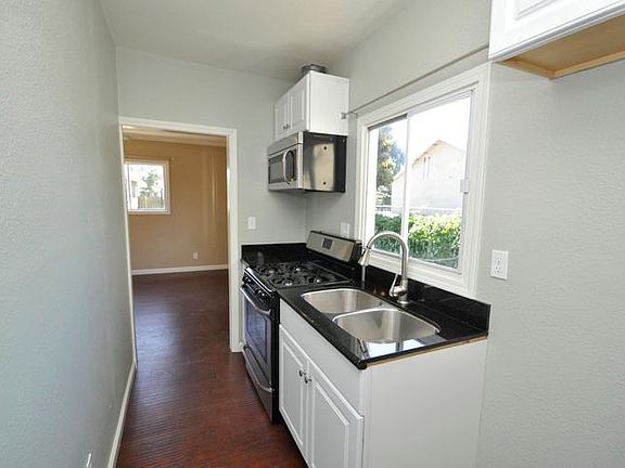 One bedroom, one bath stand-alone cottage with alley access. Galley kitchen w/stainless steel range, built-in microwave & granite countertops. Laminate wood flooring throughout. Whole interior freshly painted. Bathroom w/shower & upgraded fixtures. Additional space that can be used as dining area, office, etc. Single driveway parking off alley. Fenced back patio area and an additional open, shared yard. Owner pays for water, trash, and gardening. One dedicated parking space. Owner will consider pet with additional security deposit and has some breed restrictions due to insurance. No smoking is permitted.