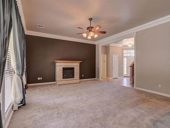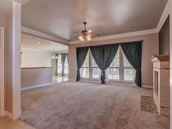 • INT/EXT FEATURES: Garage Door Opener, Fireplace, Gas Logs, Slab, Security System, Patio, Lawn Sprinkler System, Storm Shelter