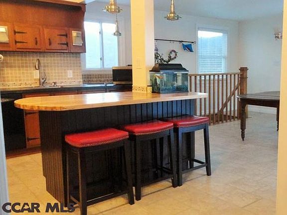 Enjoy the mountain views from this move in ready ranch home! The kitchen, open to the dining area or sunroom and family room has sliding glass doors to the spacious deck. The living room boasts beautiful hardwood floors, a fireplace and four large windows to best see the view! The kitchen is nicely updated with an amazing island! There are plenty of play areas in the lower level which is a full walk out to the back yard! The coal burner could be a primary or secondary source of energy efficient heat. Schedule your time to see this home today!