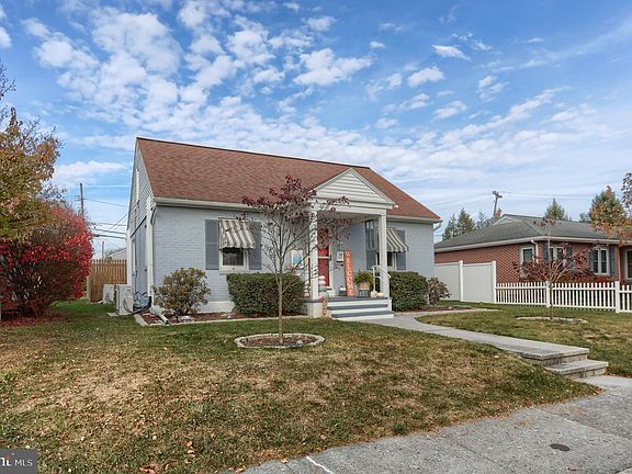 Very well-maintained Cape Cod with fenced rear yard, new large Trex deck and retractable awning, detached two-car garage, concreted shed with electric, and off-street parking. The home has 4 bedrooms (2 on the first floor & 2 on the second floor), one full bath with tub/shower, kitchen with door to side porch, new butcher block countertops and garden window, living room, and partially finished lower level with wet bar and gas fireplace. The home has fresh indoor paint and new flooring on the first floor, the exterior has been recently painted, and the home has central air. The large rear deck is great for entertaining!