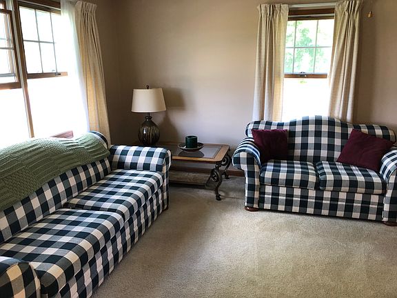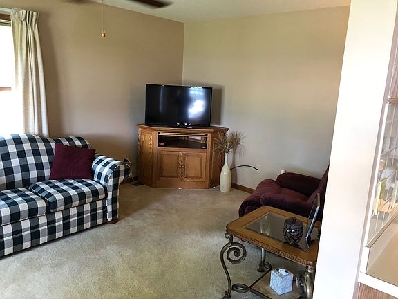 Located on corner lot - in town convenience. Finished garage with stairway and storage above garage. Updated appliances and decor. Furnished and well kept. Maintenance free living. Pets allowed.