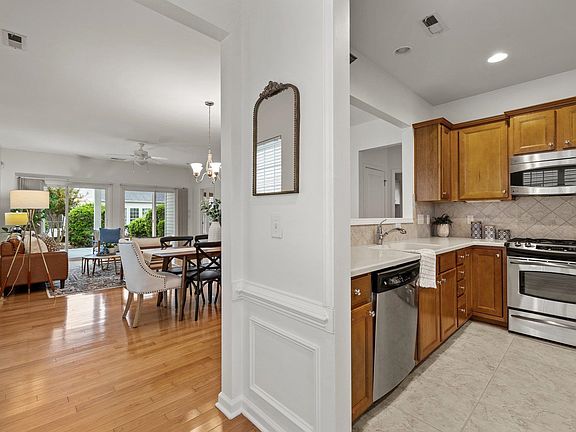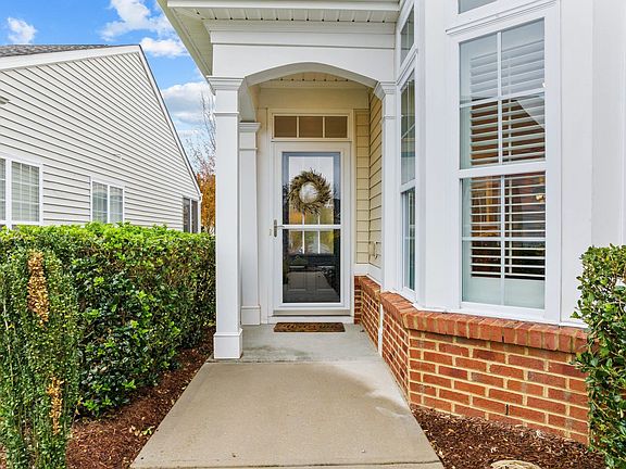 Adorable Carolina Preserve Villa with unbeatable location around the corner (about 1/10 a mile) to Bradford Hall and all the amenities Carolina Preserve has to offer. Abundant windows flood the main living areas with natural light. Bright, open LR/DR combo w/ gleaming hardwood floors leads to a lovely patio with exceptional privacy. The kitchen boasts plantation shutters, all stainless steel appliances, smooth surface countertops & beautiful 42 inch wood cabinets for the chef in you. Massive primary bedroom, spacious walk in closet & large en suite bathroom w/ recently updated walk in shower with grab bars for safety. The second bedroom has a built in murphy bed with enough room for a desk. The third bedrooms offer fantastic privacy separated from the primary bedroom at the end of a 2nd hallway. Roof 2021 and Epoxy Garage Floor! Carolina Preserve is Cary's premiere 55+ active adult community w/ luxury pools, tennis courts, walking trails, fitness center, social clubs, Bocce, art studio, dance studio and so much more. Absolutely unbeatable location & move in ready. Come enjoy the resort lifestyle you've earned!