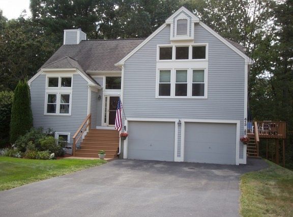 For more information, please contact: Tim or Donna Parrott, Keller Williams Realty at (603) 512-3273 or Office at (603) 883-8400 x119 or visit my website at http://www.tdparrott.net. Very well maintained multi-level home with open concept floor plan. Inviting living room and dining room with gas fireplace and wood parquet floors. Eat-in Kitchen with stainless steel appliances, corian counters and sliders to a fabulous wrap around deck overlooking a private wooded setting. Huge master suite with cathedral ceiling, his and hers closets, and a spacious master bath with jetted tub, shower and double vanity. The 3rd floor consists of a second bedroom and a loft overlooking the first floor living area. Plenty of room for the extended family or teens with a finished walkout basement with a family room, office, 3rd bedroom and 3/4 bath. This lovely home has been updated with 2 new heating systems, newer windows and roof and has central AC, irrigation, 5 ceiling fans and is wired for a generator.