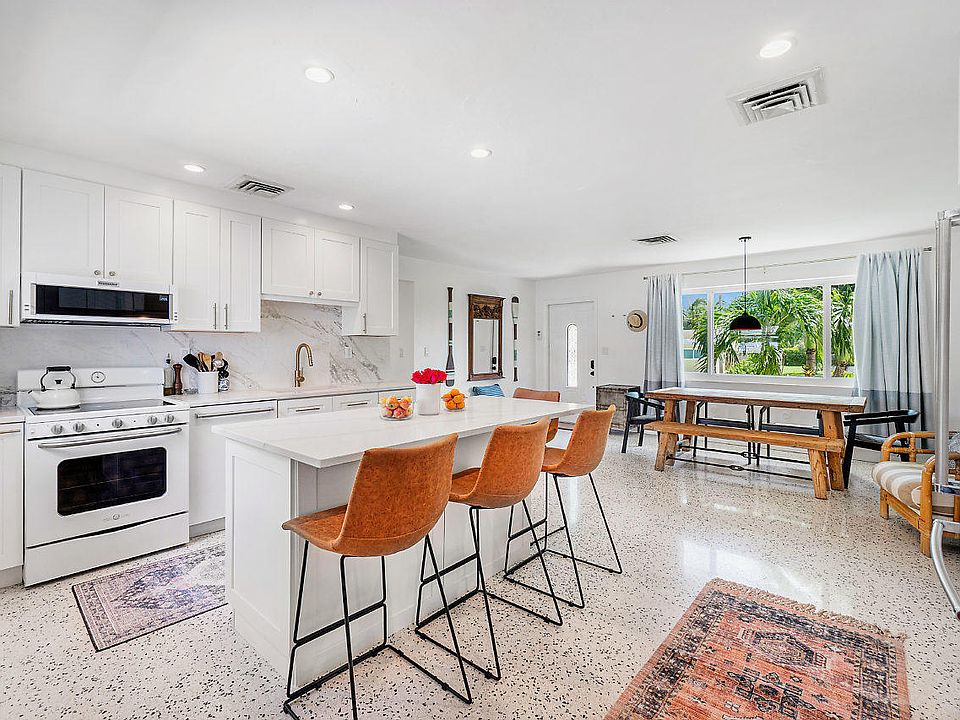 Come see this beautifully renovated casita in the heart of the Village of North Palm Beach! This home offers a spacious, open floor plan with freshly restored Terrazzo, impact windows, an extra large one car garage, and plenty of room for a large boat in the fenced-in side yard. The stunningly designed kitchen includes white, custom soft-close shaker cabinets, an extra large kitchen island, new KitchenAide appliances, marbleized quartz countertops, high-end finishes, and so much more!! With plenty of space in the bedrooms, the sizes will impress you. The large living space features a tongue and groove ceiling, which opens to an enormous poured concrete patio, made for entertaining. Fruit trees, garden beds and rare palms complete this beautiful find-it won't last long!