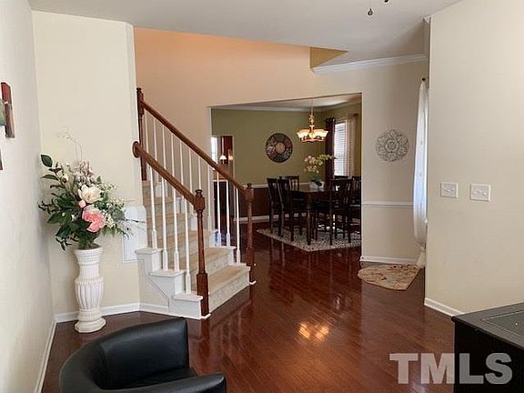 Elegant Corner lot home next to a Cul-de-sac in a sought after neighborhood just minutes from RTP & Airport. Open-Concept Living with beautiful Kitchen overlooking the Spacious Family room. Hardwood flooring. Master and 3 additional large bedrooms give a family an abundance of space. MasterBth includes dual sinks, his/her closets, separate shower and tub, & water closest. Loft Area provides tremendous flexibility. Front porch provides an inviting & enjoyable outdoor space. Large community pool and cabana.