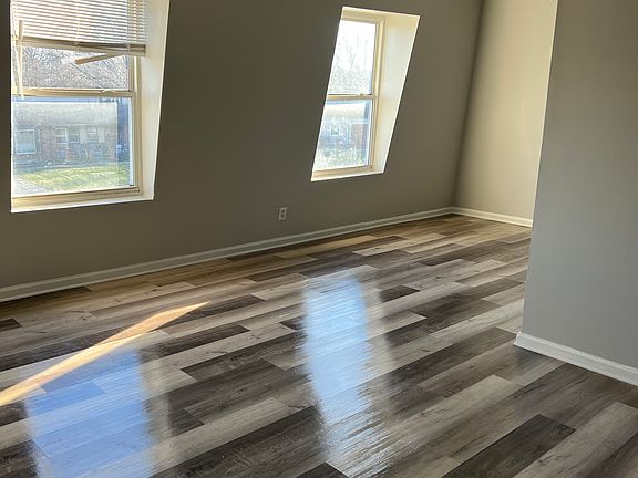 Top story apartment with updated paint and flooring, freshly painted cabinets, and off street parking. Washer and dryer hookups are in the unit for easy laundry! Owner pays water and trash, tenant pays electric and gas. No smoking. No pets. Zillow applications are welcome but we require our own application with $40 fee per adult. Applicants must make 3x the rent as a household. Favorable rental history with references and criminal/credit check required. No past evictions. This is a family friendly apartment complex. Hablamos un poco espanol.