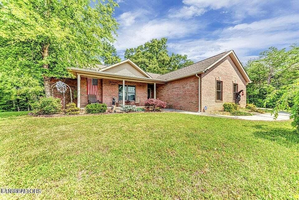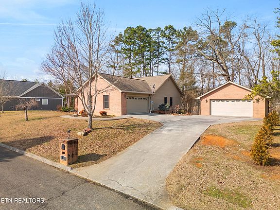 Imagine arriving to your tranquil retreat in a peaceful cul-de-sac, where the front porch presents breathtaking mountain vistas. As you enter, a spacious great room with soaring cathedral ceilings seamlessly connects to an open-concept kitchen, creating an inviting atmosphere for both relaxation and entertaining. The kitchen is thoughtfully designed with modern appliances, including a brand-new dishwasher, catering to the needs of any culinary enthusiast. The owner's suite serves as a private retreat, featuring lofty ceilings, an expansive walk-in closet, and a recently remodeled bathroom complete with a walk-in shower and dual vanities. The home's split-bedroom design ensures privacy for all residents. A versatile extra room awaits your personal touch—ideal as a dining area, cozy den, or productive office. The utility room comes complete with a washer and dryer for your convenience. Outside, the expansive back deck and screened sunroom invite you to unwind and entertain, all while soaking in the beautiful surroundings. Car enthusiasts and hobbyists will appreciate the attached two-car garage, as well as an additional detached two-car garage that doubles as a workshop. Recent upgrades, including a new HVAC system, water heater, and remodeled bathrooms, enhance the home's comfort and efficiency. This residence harmoniously blends modern amenities, functionality, and natural beauty, offering a lifestyle that's both inviting and inspiring.