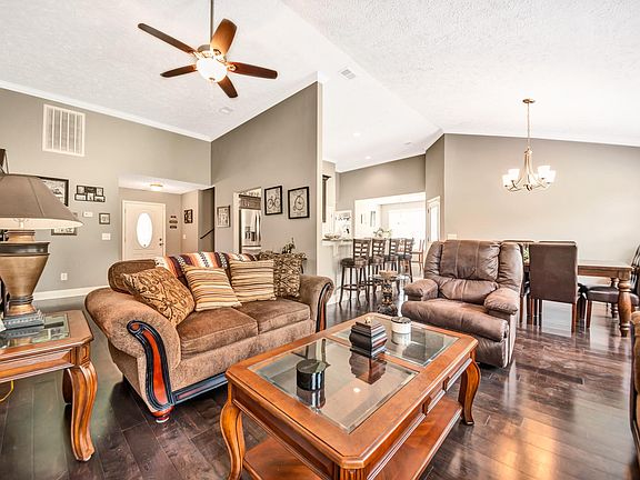 Move in ready!!! A beautiful lightly lived in like NEW home. A gorgeous kitchen with granite countertops. Tile, walk in closet, large man cave bonus room with pool table that remains , screened in patio, expanded concrete driveway and side walk, new storage building, stainless steel appliances and washer/dryer all remain, back concrete patio over 250 sq ft, garage cabinets and work top remains. 65 inch smart TV stays, all other items in the house are for sale outside of this transaction