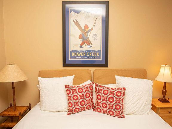 AVAILABLE: April - November, 2023 This romantically charming condo is located in one of the most coveted locations in Vail. You don't need a vehicle to experience all that Vail has to offer. Situated on the top floor offering Mountain, Village, and Gore Creek Views. Just a few minute's walk to the Golden Peak ski area and Bridge Street, the center of Vail, and all the shopping and dining Vail is famous for. This wonderfully decorated space has two bedrooms and a hanging loft. The master bedroom is fitted with a comfortable queen bed, new linens with en suite bathroom with shower. The second bedroom is equipped with a king bed, new linens. Open the windows in either bedroom to enjoy the sounds of Gore Creek flowing below. The loft is quiet and is accessed by a ladder. It features a cozy queen sleeper sofa and skylight, perfect for the kids in your group as headroom is limited. The guest bathroom has a tiled tub/shower combo and is centrally located for convenience. The cozy kitchen is stocked with all the equipment necessary to cook a simple breakfast or create a delicious dinner. The living room offers ample seating and a large flat panel TV as well as, a gas fireplace. After an active day hiking, biking or skiing, sit back and Apres' taking in the fire, views and alluring atmosphere. This property is truly a rare find in both ambiance and location. There is one assigned parking spot and additional cars can park in the plentiful pay parking structure just a block away. You are sure to enjoy this beautiful space right in the heart of everything! Other Amenities; Wireless Internet, Full Kitchen, Washer/Dryer in basement, Easy Access Building and Parking Spot. Owner pays utilities. No pets permitted. 1 mid-stay clean required at tenant's expense.