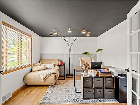 A level-entry and tons of curb appeal welcome you to 413 Grace Street. The first floor features a large office or 4th bedroom (12'x11'), spacious living room with recessed overhead lights, updated half bath, separate dining room area, and a fully equipped eat in kitchen with a new oven and 5-burner gas cooktop. The second floor includes 3 BRs with lots of closet space. New solid Oak closet doors, Pella windows (2015), new paint throughout, furnace and roof from 2015. HUGE walk-in attic is great for storage. Entertaining is a breeze in the newly remodeled basement (18'x14') including a wet bar with granite counters, beverage cooler, laundry space, half bath, and an additional room (14'x10') perfect for a home gym or 2nd office. Enjoy the HUGE backyard perfect for a garden, play set, pool, etc. and can be easily fenced in. Largest lot in the entire plan! The long driveway and oversized 2-car garage allow for plenty of parking and storage. Family owned and maintained for over 6 decades!