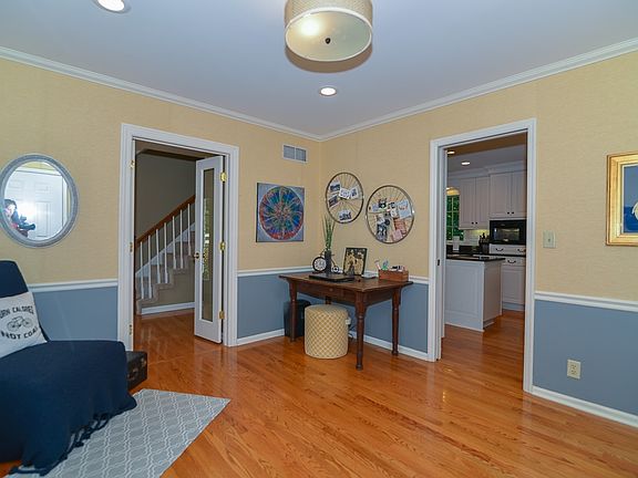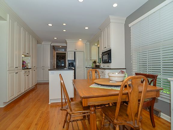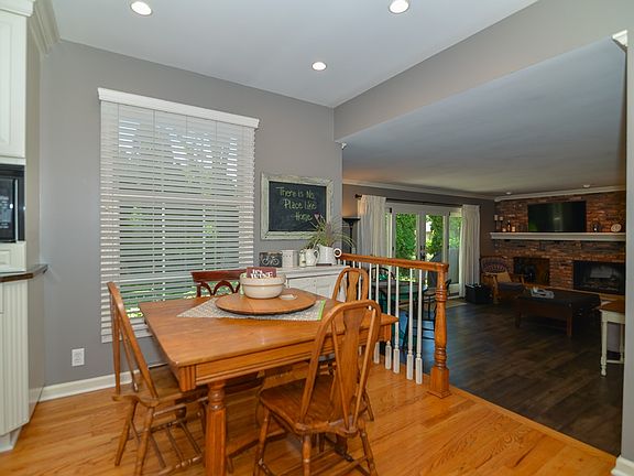 Don't miss out on this beautiful, spacious home and located on a cul-de- The home's main level is perfect for entertaining, with a large living room with sliding doors looking out to a patio and beautiful half-acre wooded lot. The patio has outdoor speakers and a fenced-in yard, perfect for relaxing with family and friends. The living room has a new custom built-in beverage center with a granite counter top, and is close to the patio which makes entertaining a breeze. The living room also has a gas fireplace, new flooring and newly painted trim and walls. The eat-in kitchen is timeless, with white cabinets, black granite counter tops and subway tile. There are hardwood floors throughout the main level. The dining room/family room off the kitchen is very cozy and spacious. From the garage, you will enter the house into a large mudroom/office space. A half bath completes the main level. The second level has 4 bedrooms, with cozy, neutral carpeting throughout. The spacious master bedroom has a walk-in closet and master bathroom with a walk-in shower. The second full bath is located in the hallway, along with 2 closets for extra storage. Both bathrooms have ceramic tile flooring, tile surrounds, and granite counter tops. The basement has fresh paint and an amazing built-in sound system with Klipsch speakers perfect for at-home movie nights. The utility room has lots of storage and a new washer. The heated, two-stall attached garage has lots of room for storage and a work bench.