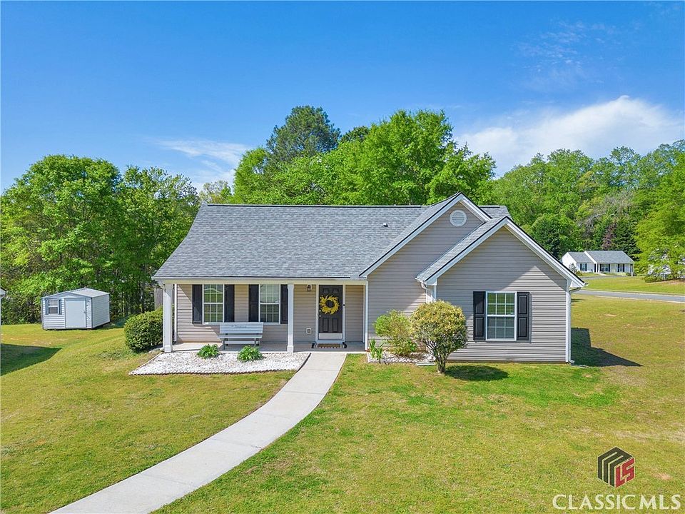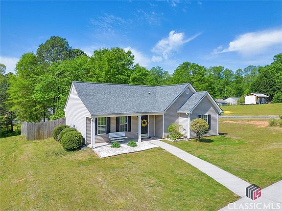 Welcome to this beautiful corner lot in Eagles Landing! This charming ranch-style home has a cozy farmhouse feel, featuring sliding barn doors in the laundry area and freshly renovated flooring throughout the kitchen that pairs beautifully with the white cabinets. You'll also love the fresh coat of paint in the living room, kitchen, and hallway, giving the home a bright and updated look. The backyard is spacious and private, with a side gate for easy access. No HOA and a great location!