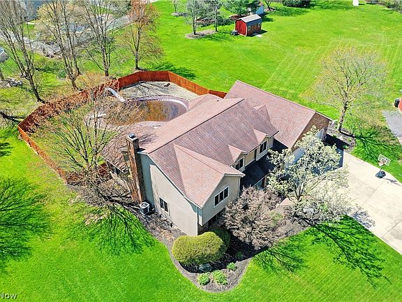Find your forever getaway with this Cortland property in the Lakeview School District! This sprawling four-bedroom home is tucked away in a quiet corner of a highly desirable neighborhood right off a dead-end cul-de-sac for optimal, low traffic privacy. Handsome brickwork covers the face of the residence to include the large covered front patio. An additional stepped brick sidewalk juts from the large concrete apron set before the three-car attached garage. Flowering trees join the expert landscaping while a stained wood fence wraps around the rear, surrounding both the in-ground pool, relaxing cabana area and raised rear deck. Inside, a grand foyer reveals a carpeted staircase as lavish woodwork adds a tough of craftsmanship and warmth. Tiled flooring gives way to a welcoming carpeted living room for easy gathering. Opposite the foyer, formal dining beckons with burgundy walls as you make your way towards the kitchen. Here, a prominent island resides below bespoke lighting as tiled countertops run beneath the custom cabinetry. First floor laundry hides around the corner with a full bath, pantry and garage access. Enjoy a sundrenched casual meal as you overlook the endearing sunken family room with its brick mantle and fireplace. French doors open to a wood trimmed sunroom and its high peaked ceiling. Upstairs, the oversized master contains two walk-in closets and full private bath. A third full bath highlights its jacuzzi style tub as three remaining bedrooms complete the floor. Downstairs, a partially finished basement adds to the appeal. Come and see for yourself.
