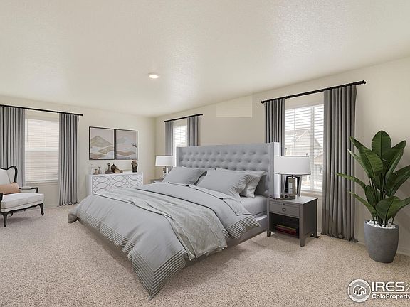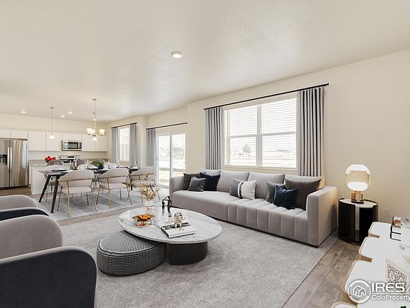 Front porch facing west for beautiful evening sunsets! Steps away from community trails that connect all five community parks! This stunning 2-Story with 4 bedrooms and 2.5 baths has an Island kitchen that opens to great room and dining, perfect for large gatherings and entertaining. Stainless Steel appliances with gas range is perfect for you cooking needs. Modern Telluride color story with white cabinets and designer chosen finishes. Main floor study in a perfect location. Huge primary Bedroom offer a relaxing retreat with en suite 4-piece bath with double sinks and oversized walk-in closet. Thoughtfully designed with loft outside the primary bedroom to separate from the secondary bedrooms. Additional features to this amazing home include A/C, a tank-less hot water heater, and smart home technology package. Home comes with front yard landscaping and a front porch to enjoy the Colorado sunshine. Relaxing walks through the communities five parks, trails and open space makes this an amazing place to live! Conveniently located to I-25, with access to many of Colorado's outdoor recreation activities and attractions as well as the newest restaurants and shopping in the Northern Colorado corridor. ***Estimated Delivery Date: February. Photos are representative and not of actual property***