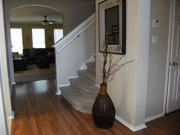 Large beautiful 4 bdrm home in great neigborhood.LR with corner fireplace open to breakfast & kitchen.Dining room could be study.Master on first level with large bath.Garden tub with separate shower.Double sinks, large walkin closet.Under stair storage.Updated half bath.Second level gmrm,study,computer niche,3 large secondary bdrms,full bath with lrg vanity.16Seer AC and Solar Screens.Easy access to 114 & I35W.Walk to skate park,Hawaiian Falls.